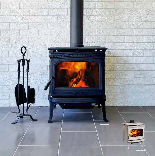 With elegant, historic styling that adds to the decor of any room, the Pacific Energy Alderlea T5 combines the best of cast iron and steel stoves: offering radiant and convective heat, with a concealed cooktop and a huge glass window that has a self cleaning airwash system . It’s an easy-to-light, easy-to use, long-burning wood heater with old world charm and unmatched durability