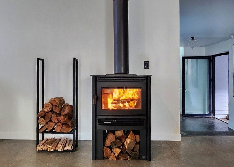 The Pacific Energy Neo 1.6 freestanding slow combustion wood heater makes a bold statement with it’s tall profile for easy loading, line-of-sight view of the flame, and modern design. Don't be fooled by its small footprint; like its larger cousin the Neo 2.5, the Neo 1.6 is a true heating machine with Pacific Energy’s solid steel construction, floating firebox with stainless steel baffle and long burn times. Comes standard with an ashpan cleaning system and black side panels but available with white or red options to suit your home.