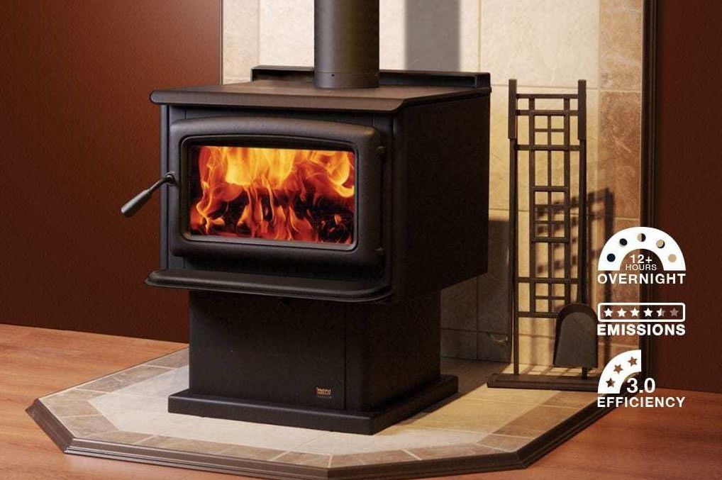 Available with legs or pedestal base options, the Summit is the largest slow combustion wood heater by Pacific Energy, with a massive 300m² heating capacity. The fully brick lined, floating firebox can take up to 450mm long wood and when fully loaded, you can shut the heater down to get a long 12 to 15 hour burn time on a single load of wood.